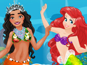 Today Moana and Ariel at the beach happily, Moana wants to swim faster. Could her dream come true? Come and join your favorite Disney princesses in getting started with this brand-new game for girls called Ariel's Mermaid 101 and help Moana become a real mermaid in no time. Have a great time!