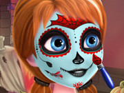 Halloween is coming! What activities are you planning to attend? Trick-or-treating or attending Halloween costume parties? Little Elsa and Anna want to have scary makeup and ask for candies from neighbors. Let's help them draw face art! There are 6 kinds of patterns for you to choose from. Pick your favorite one to start. Happy Halloween!