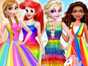 Do you like rainbow style fashion? If you like, you must like the game Princess Rainbow Style fashion. Now our Disney princesses try the different rainbow dress. Can you help them? Choose awesome outfits and match some accessories for each of them. Who will be the most fashionable? Let's see! Have a good time!