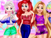 Do you like Neon lights? Do you want to try neon fashion? Today Disney princess want to try the unique fashion, can you help them? Choose awesome outfits and match some accessories for each of them. Who will be the most fashionable? Have a good time!