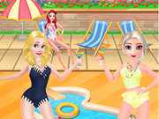 Princess Ariel intends to invite her friends Elsa and Rapunzel to join her pool party. First, she needs to clean the dirty pool, put the garbage into the rubbish bag, and put the items back. Then, help three cute girls to put on swimsuits! You can't wait to join their pool party! Enjoy your game time!