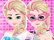 Elsa wants to be a princess with some super powers, today she has a chance to try it, can you help her to choose some superhero dresses to make her look cooler? Her make-up should be bright and colorful. She also needs a new hair style. You will find different clothes in her wardrobe. Have fun!
