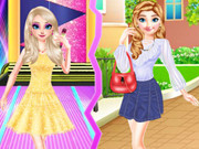Today our Frozen sisters start a competition, let's take a look! Elsa prefers stage style, so you can help her dress up in stage style and put on her veil. Anna prefers street style, so you can help her style clothes and match her beloved bag. Have fun with Frozen Sisters Street Style Vs Stage Style!