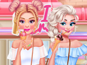 Are you ready to eat ice cream on this beautiful day with your favorite princesses? But first of all, for this dress you girls need to dress up, so let's see what you're going to wear today. Make up their hair for them, open the closet and pick them the right clothes. Have a nice time!